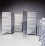 No caso da Linha Ripa, por exemplo, as peças são compostas por elementos modulares produzidos a partir de diversos tipos de perfis de alumínio: perfis de seção quadrada, são utilizados como elementos horizontais de vedação (ripas); perfis maciços de seção redonda, como elementos verticais (estrutura); e tubos redondos, como espaçadores. As ripas recebem uma furação em cada extremidade, possibilitando sua colocação na estrutura, intercaladas pelos espaçadores, que utilizados, em maior o menor número, formam planos com diferentes níveis de visibilidade. Estes planos giram em torno da estrutura, possibilitando diversos posicionamentos, até o seu fechamento total.